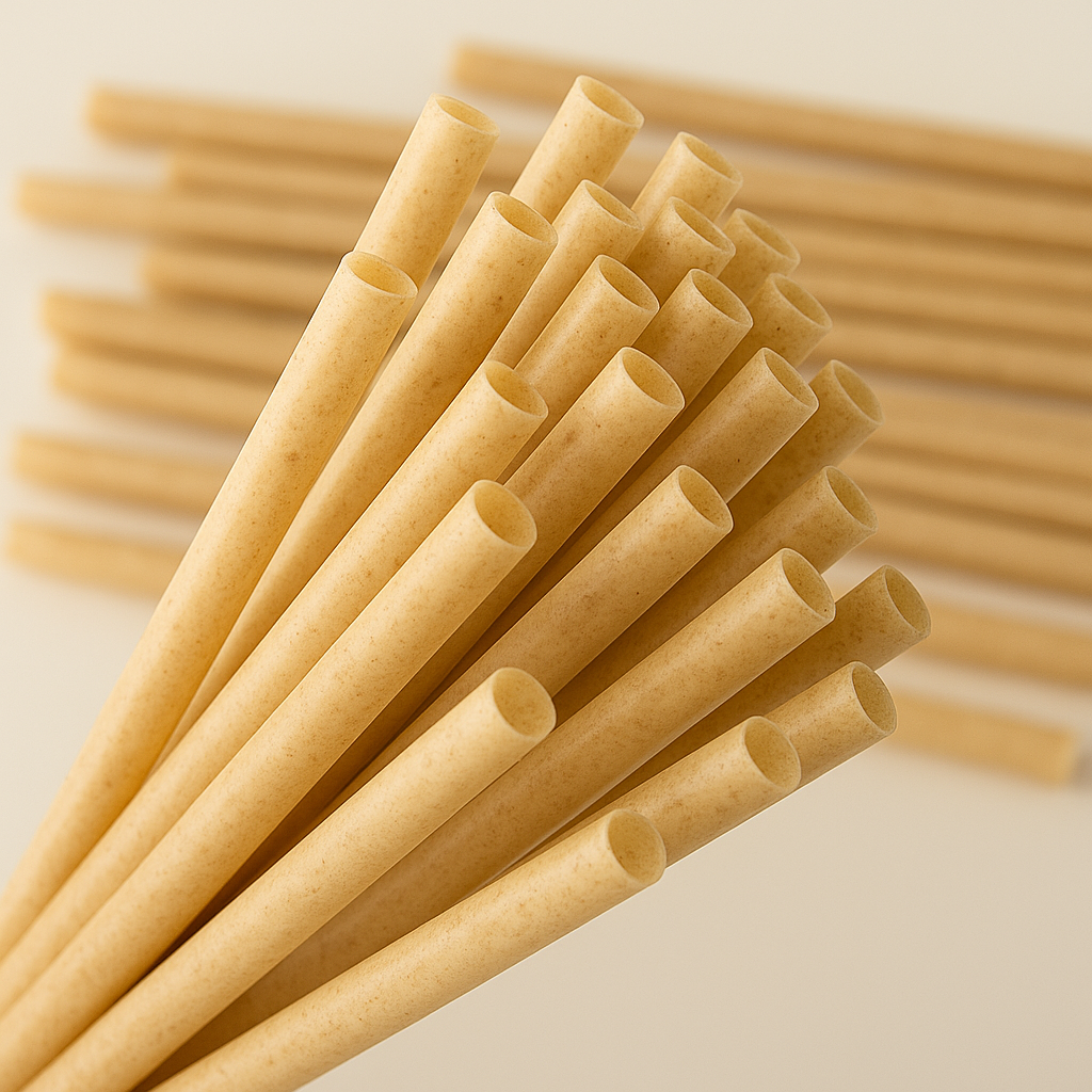 Wheat Fiber Straws are made from natural plant-based ingredients and designed to break down in composting environments, providing an eco-friendly alternative to conventional plastic straws.